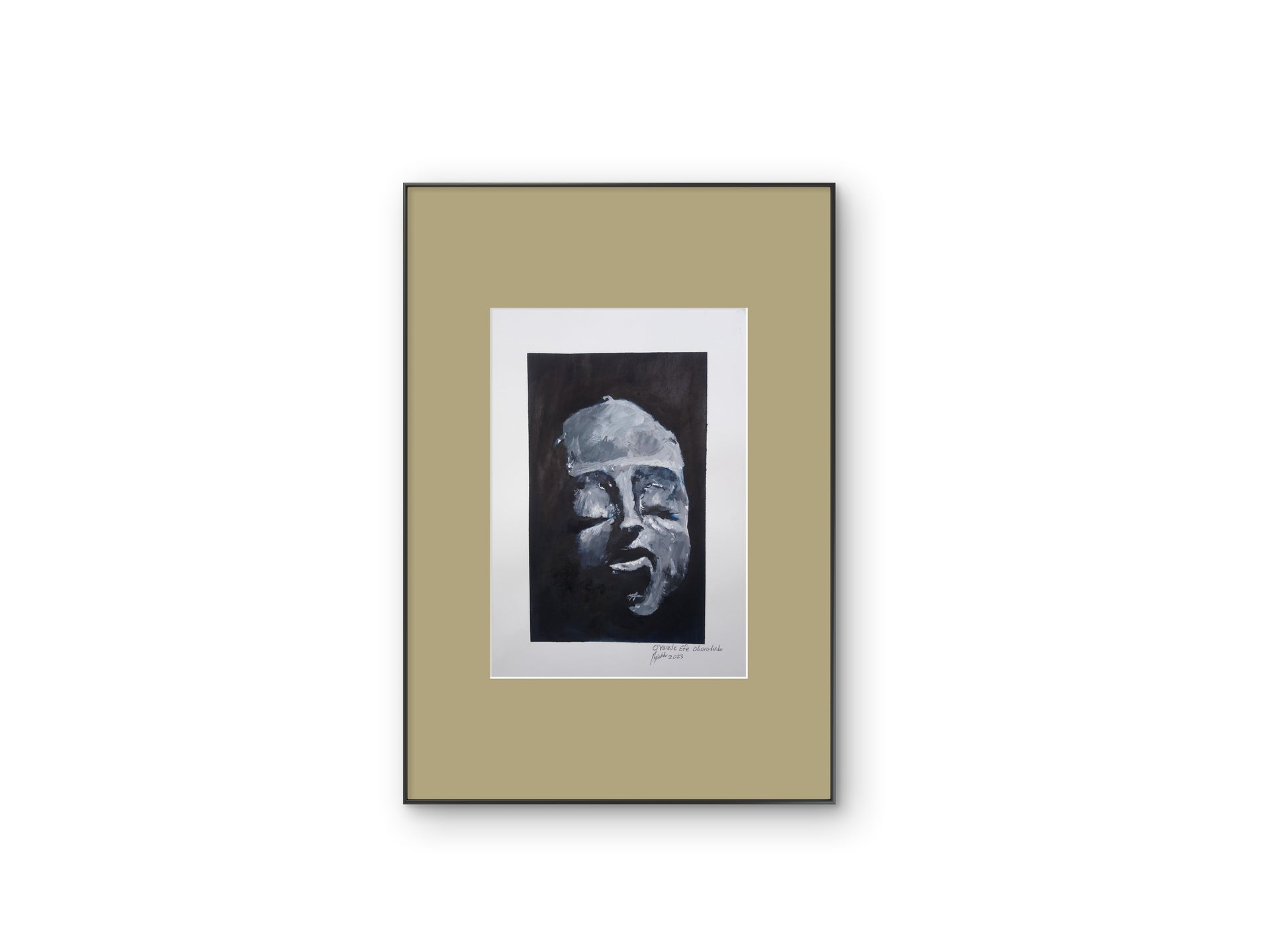 Gouache on A4 paper A solitary face emerges from the darkness, rendered in expressive monochrome brushwork. The interplay of light and shadow invites viewers to pause and reflect, evoking a sense of quiet resilience and inner transformation. Each mark is intentional, capturing the tension between vulnerability and strength. "Silent Emergence" is an exploration of presence—how we reveal ourselves, even in silence.