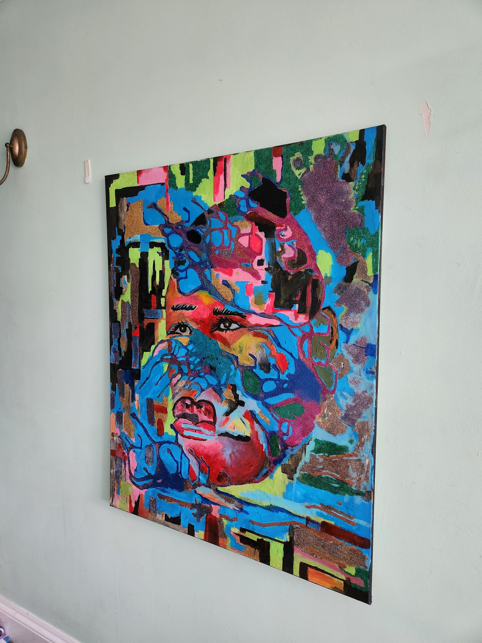 Medium: Mixed media(Acrylic, glitters and resin) on stretched canvas.